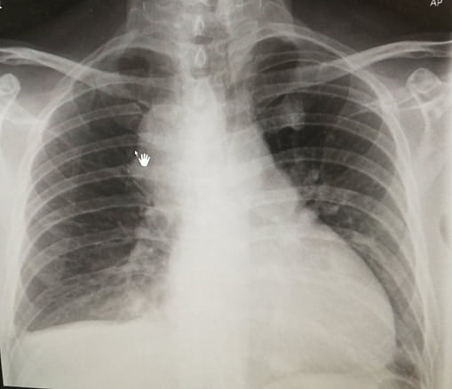 ● Immediate bedside echo was performed → Confirmed pericardial effusion
